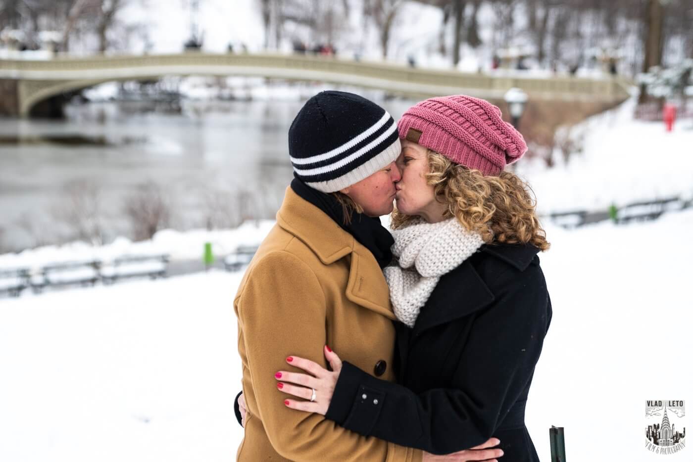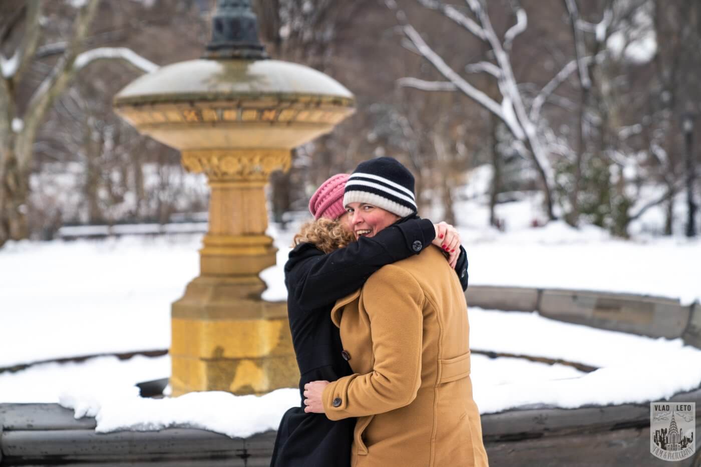 Same sex couple proposal at Cherry Hill in Central Park